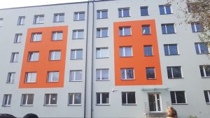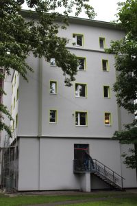 • 80 pokoi studenckich (15,60 m2), wyposażone w szafy wbudowane i trwałe meble pokojowe, w każdym pokoju jest umywalka (ciepła, zimna woda),